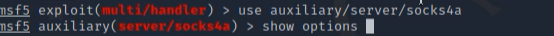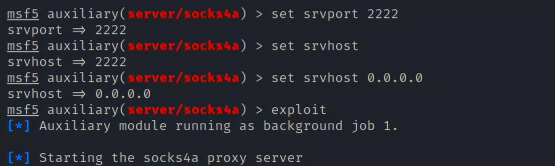 利用 msf 自带的 sock4a 模块,开启2222端口建立socks4a协议