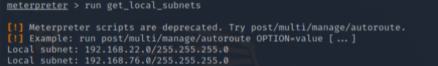 获取网络接口信息,用于判断是否有内网,如下说明还有22网段的内网,于是想办法继续渗透。