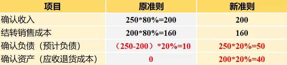 从上述处理可以看出,对于附有销售退回条款的销售,新旧准则的处理略有不同。