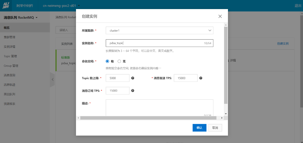 1.2.1 创建RocketMQ实例
