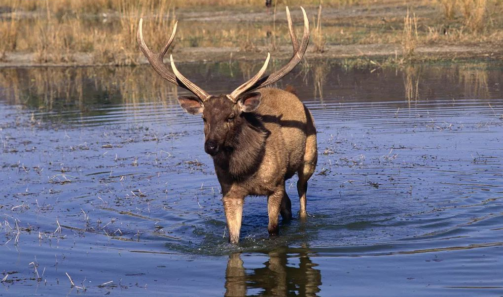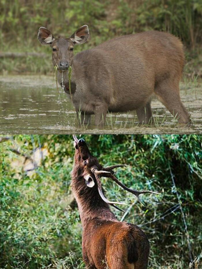 水鹿是鹿科动物中比较冷门的一种动物,我国最著名的鹿科动物是梅花鹿和白唇鹿,而水鹿却很少有人了解过。水鹿之所以被人们叫做水鹿,主要是它对水的依赖性比较强,它们很喜欢水,一般都在水源附近活动,人们经常在湿地、灌丛等地方看到它们。所以要是野外求生的话,发现了它们也就找到了水源。