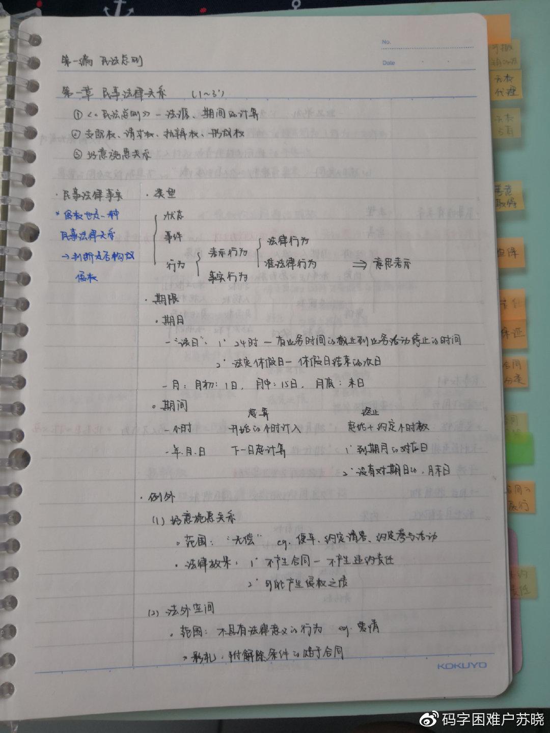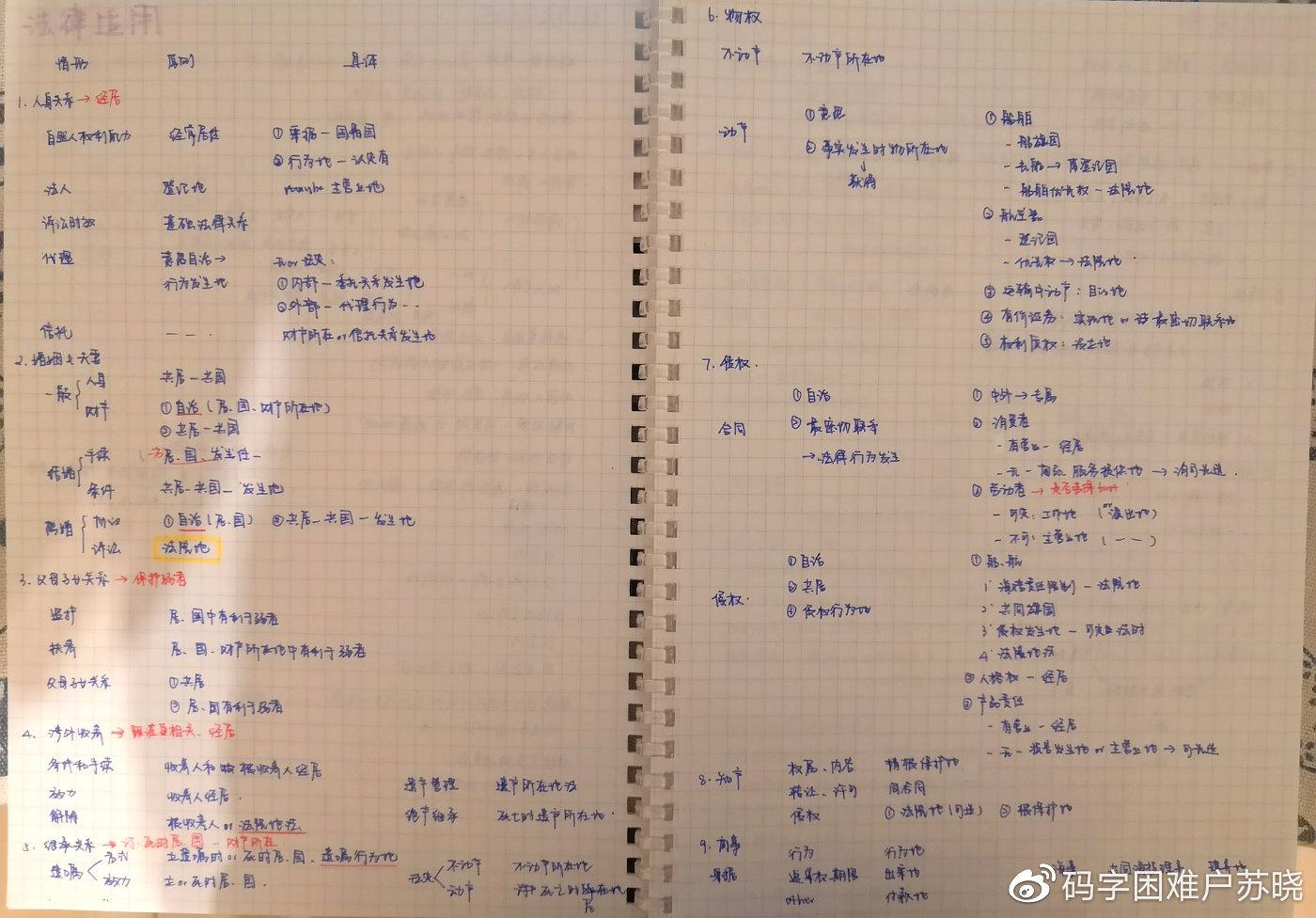 背诵内容主要是自己整理的笔记。民法其实相比于程序法来说需要死记硬背的东西比较少,所以我在第一遍花的时间比较多,第二遍时主要注意区分易混易错点(比如撤销权与解除权)。