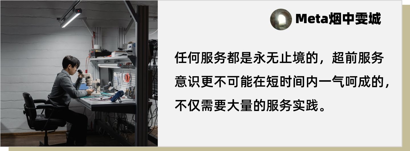 其实,任何服务都是永无止境的,超前服务意识更不可能在短时间内一气呵成的,不仅需要大量的服务实践,还需要在实践过程中不断摸索,吸取经验和教训,这样才能“修得正果”,为客户带来好的服务感受。