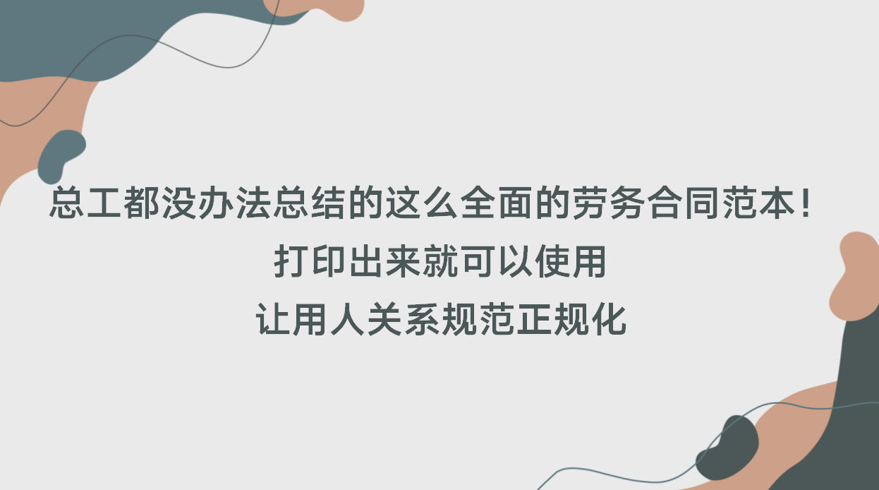 为了让用人关系规范化正规化,总结了一份全面规范的劳务合同范本,连项目总工都没办法总结的这么全面具体!