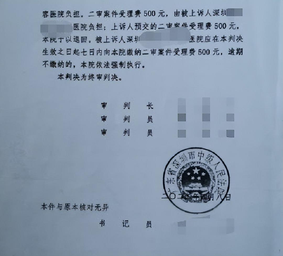 深圳中院认为,一审法院认定的基本事实清楚,但适用法律不当。2022年上半年,深圳中院二审宣判:撤销一审判决,驳回深圳某医院的诉讼请求,一二审案件受理费由深圳某医院负担。