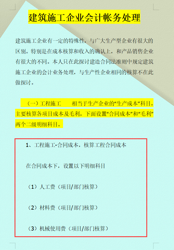 公司的会计周姐是财务部的老人的,来公司已经5年了,从招标开始她一直都跟着跑。现在为了带会计新人,专门整理了一份建筑施工企业会计帐务处理,真的是非常值得学习,今天就分享给大家。