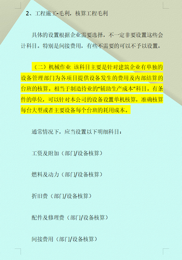 (五)工程施工各个明细科目的核算内容