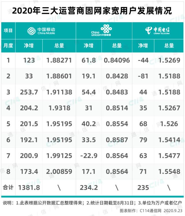 伴随着2020年8月份经营月报的公布,中国移动再次创造了奇迹,其宽带用户规模率先突破2亿户。这是继2016年年中超越中国联通、2018年下半年超过中国电信之后,中国移动宽带的又一高光时刻。