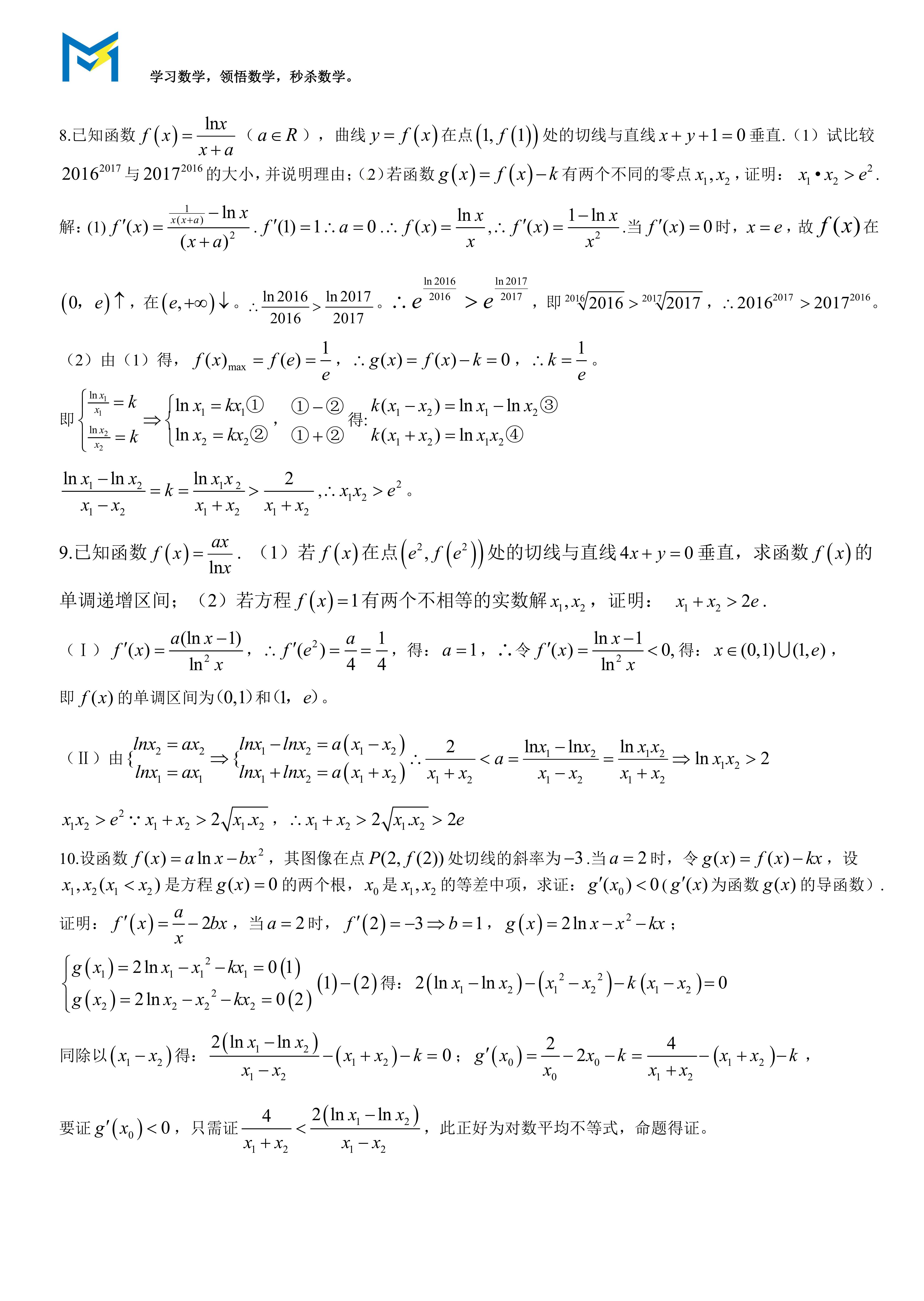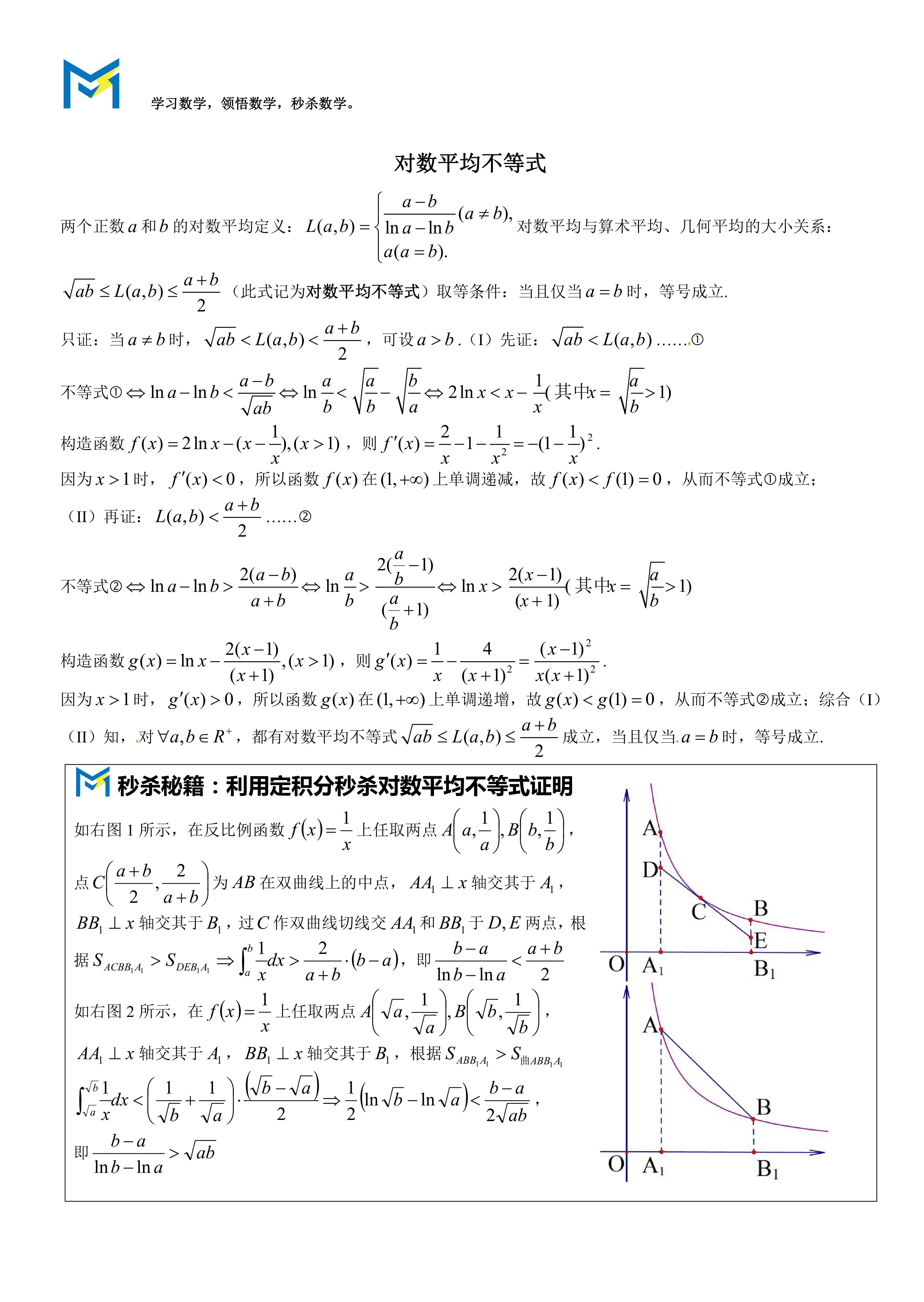 版权声明:我们致力于保护作者版权,注重分享,被刊用文章【对数平均不等式的证明([高中数学)】因无法核实真实出处,未能及时与作者取得联系,或有版权异议的,请联系管理员,我们会立即处理! 部分文章是来自自研大数据AI进行生成,内容摘自(百度百科,百度知道,头条百科,中国民法典,刑法,牛津词典,新华词典,汉语词典,国家院校,科普平台)等数据,内容仅供学习参考,不准确地方联系删除处理!;