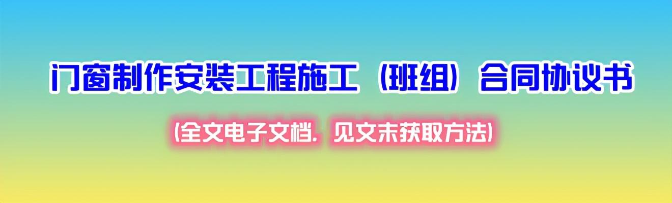 版权声明:我们致力于保护作者版权,注重分享,被刊用文章【工程合同书样本(门窗制作安装工程施工合同协议书)】因无法核实真实出处,未能及时与作者取得联系,或有版权异议的,请联系管理员,我们会立即处理! 部分文章是来自自研大数据AI进行生成,内容摘自(百度百科,百度知道,头条百科,中国民法典,刑法,牛津词典,新华词典,汉语词典,国家院校,科普平台)等数据,内容仅供学习参考,不准确地方联系删除处理!;