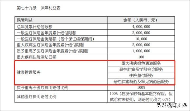 没错,人家就是把“恶性肿瘤特药”归属于健康管理服务这个增值服务中的。那么“可有被保险人的社保承担部分”便是“社保目录内”的外购药,这部分按照上面所说的60%进行报销。
