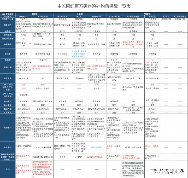 我们来看一下,目前主流百万医疗险的外购药保障和服务对比情况: