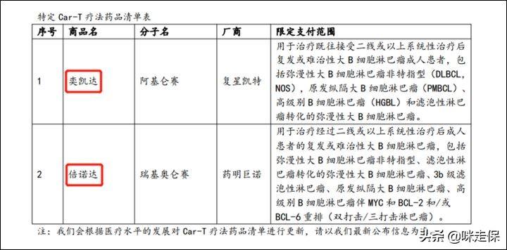 有外购药保障的百万医疗险,保险公司都有自己的药品清单,包含很多国内批准上市的肿瘤靶向药和免疫治疗药物。这些药物除了医保目录内的,还包括部分医保目录外的特效药。甚至扩展了一些特殊的进口特药,当然,前段时间天价的网红CAR-T 疗法药物——奕凯达,也被越来越多优秀的百万医疗险纳入自己的特药/外购药清单了。