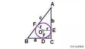 在RtΔABC中,设直角边BC = a,AC = b,斜边AB = c. 作RtΔABC的内切圆⊙O,切点分别为D、E、F(如图),设⊙O的半径为r.
