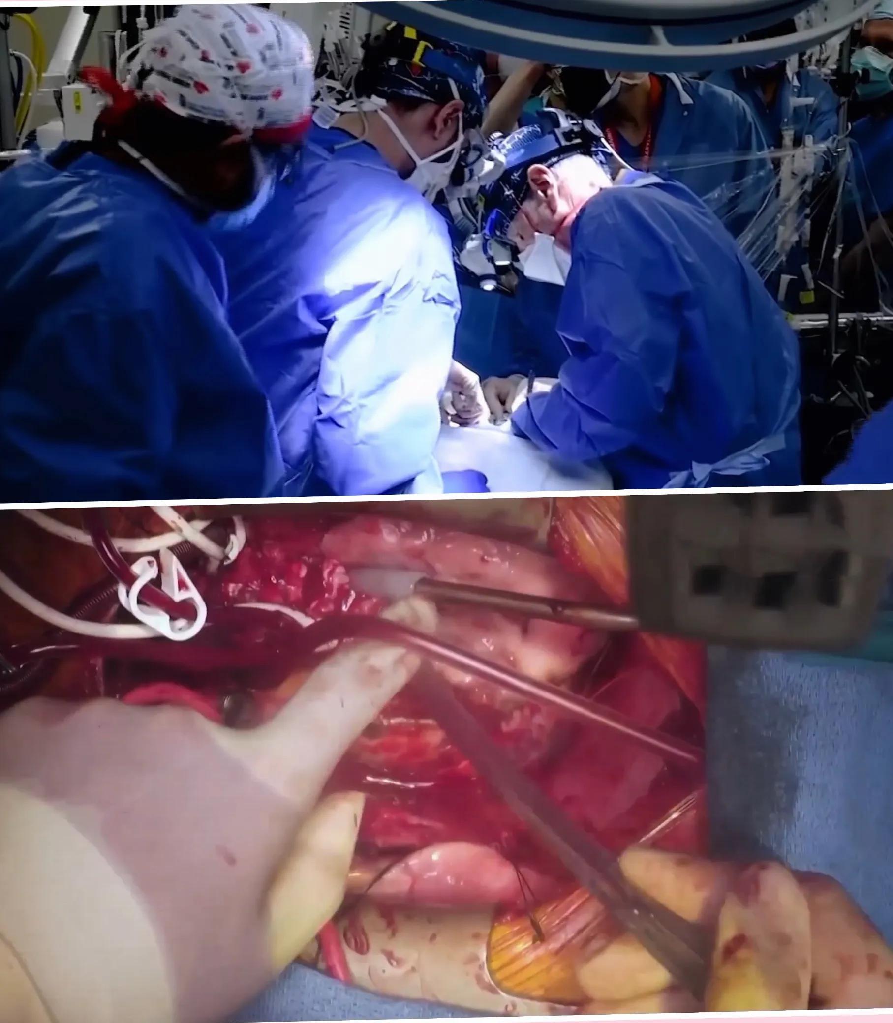 医生正紧张仔细地给贝内特做猪心脏移植手术