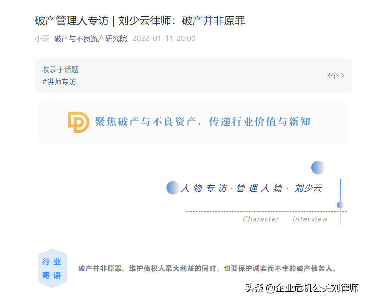 在今日头条【破产与并购】发布15篇预重整系列文章: