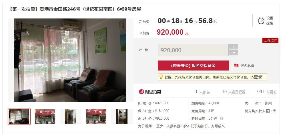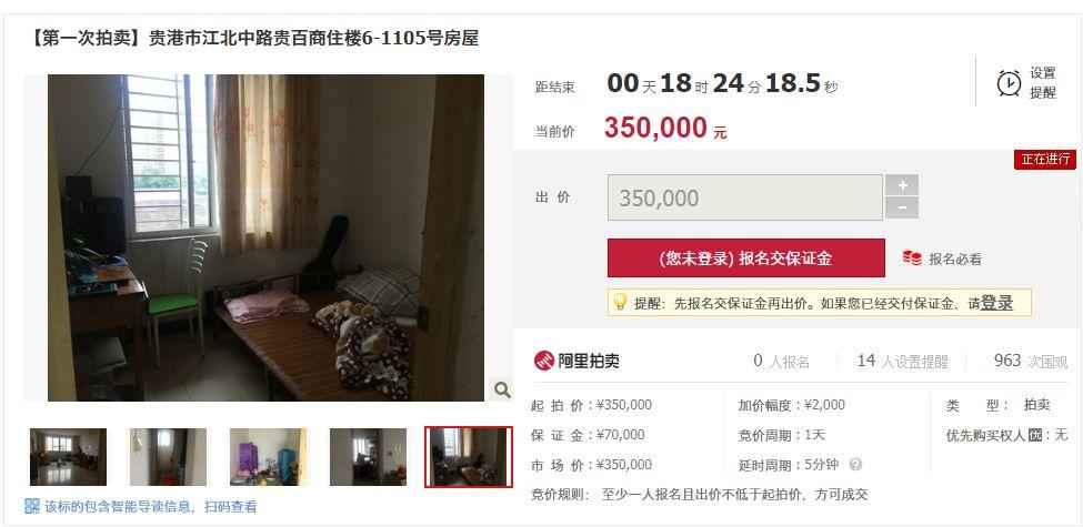 覃塘区人民法院在阿里巴巴司法拍卖网络平台上公开拍卖活动8处房屋,大家可以复制拍卖链接进入拍卖页面了解详情