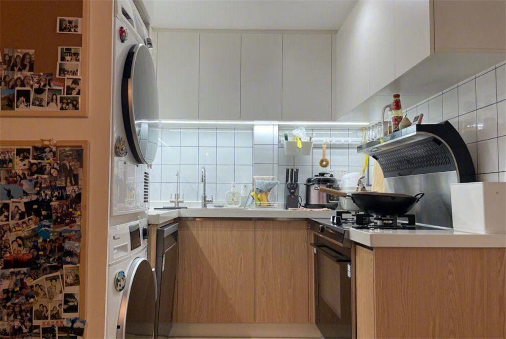 而且由于卫生间空间不足,洗衣机和烘干机也被嵌入在了厨房的橱柜中,倒是井井有条。