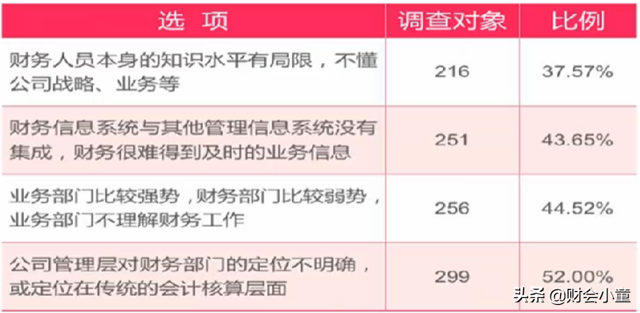 会计这么难当,人工智能也要来了,那还是考虑转型吧,也许转型之后就好了呢?然而,理想与现实总是相距甚远。现实当中,由于大部分财务人员本身知识技能的局限,导致对战略业务知之甚少,或者企业内部的其他原因,比如领导不够重视、信息系统不够集成等,导致难以转型,或者转型失败。