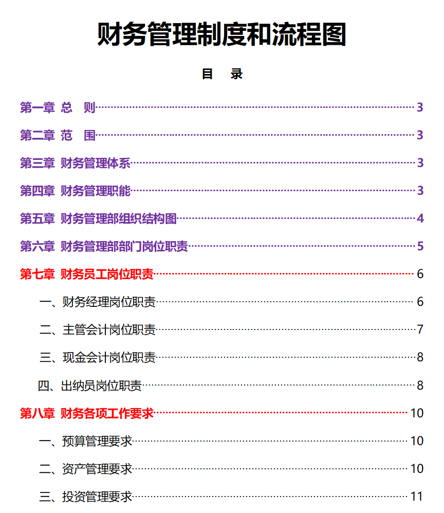 由于篇幅有限,关于公司财务管理制度和流程图,以及财务部各岗位工作职责及工作要求就不一一展示了,希望本章内容能帮助每个财会人员快速地完成日常财务工作~~