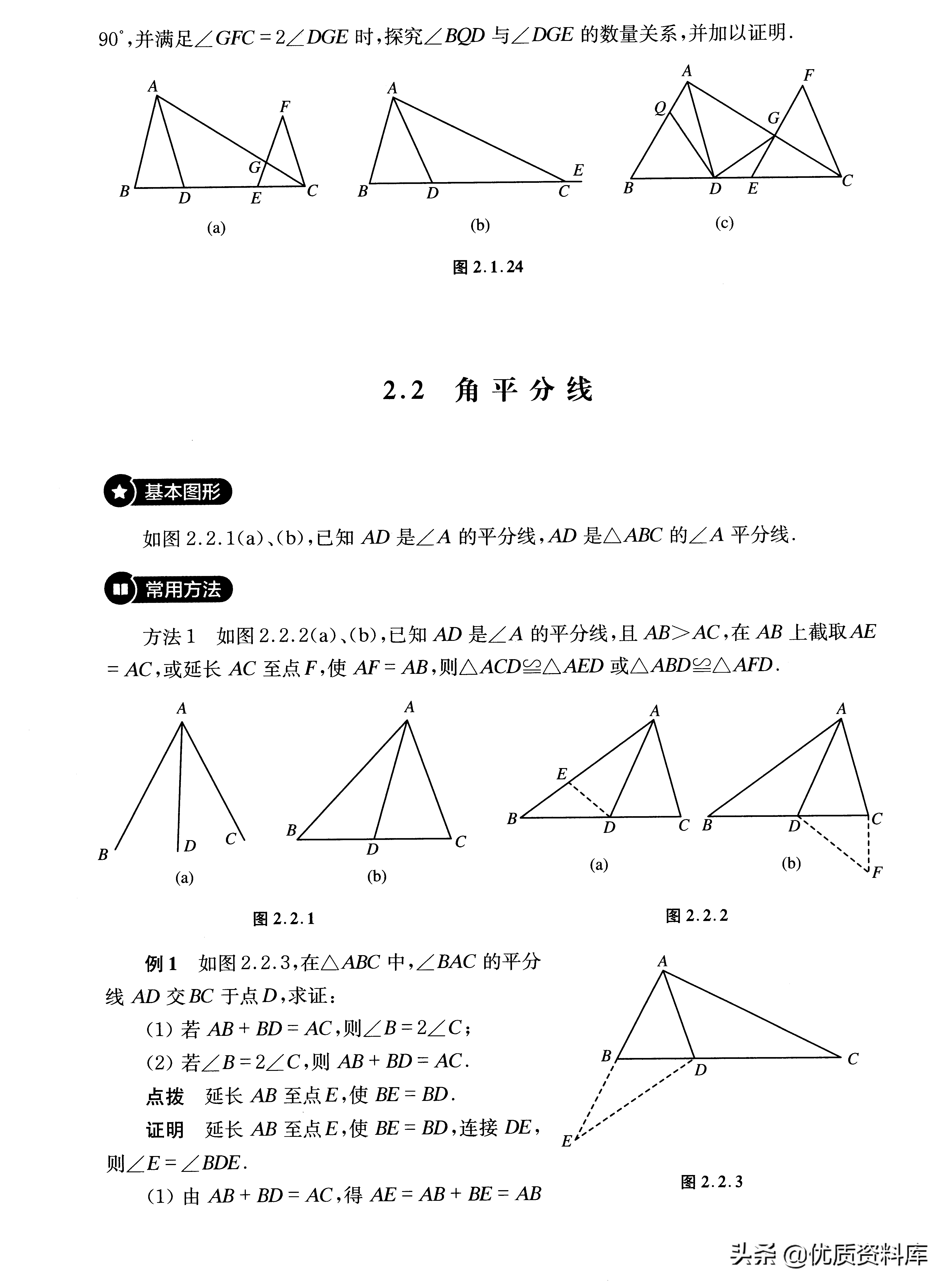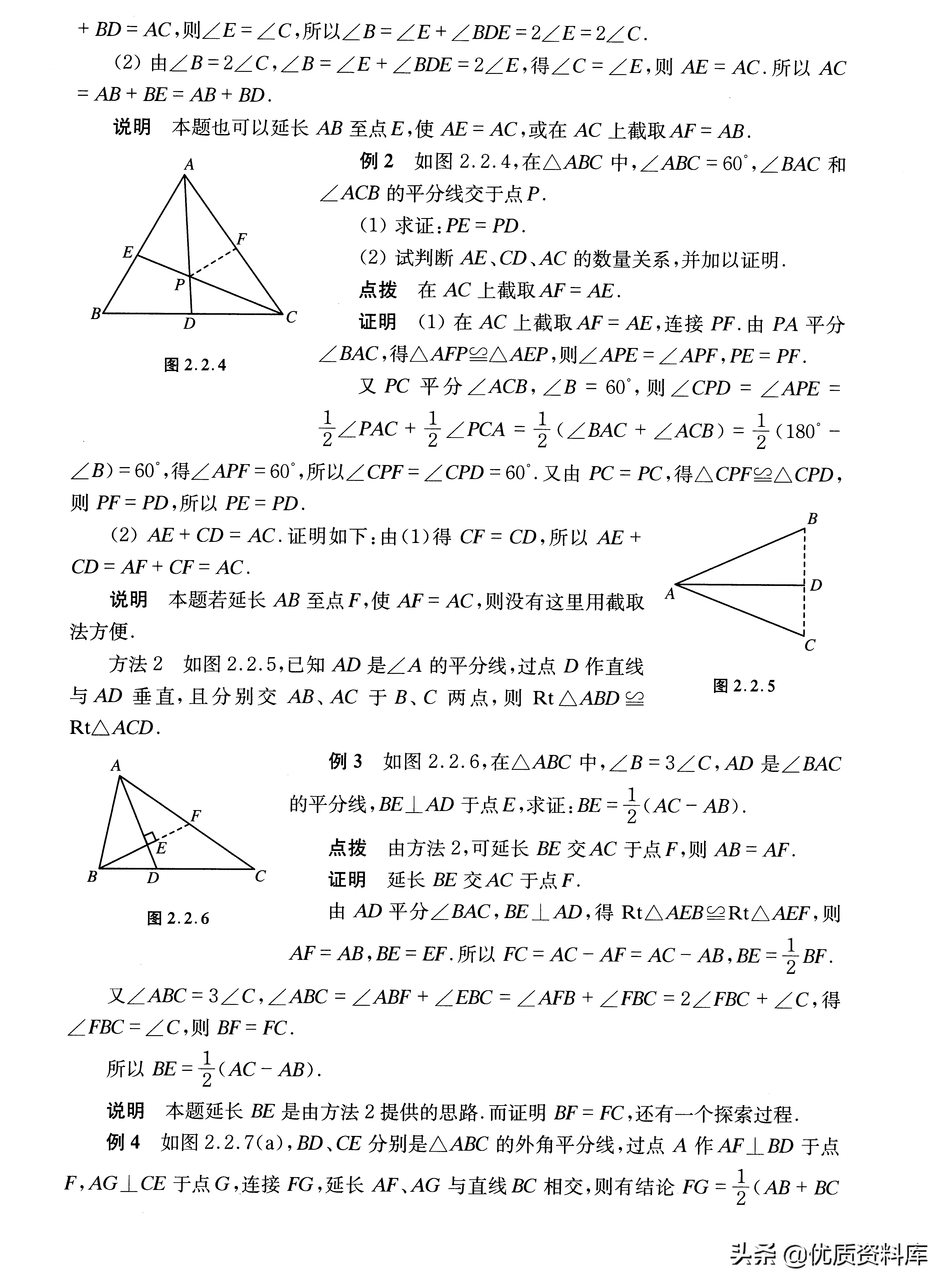 角平分线是三角形中最重要的线之一,可以通过角平分线构造全等三角形解决问题。
