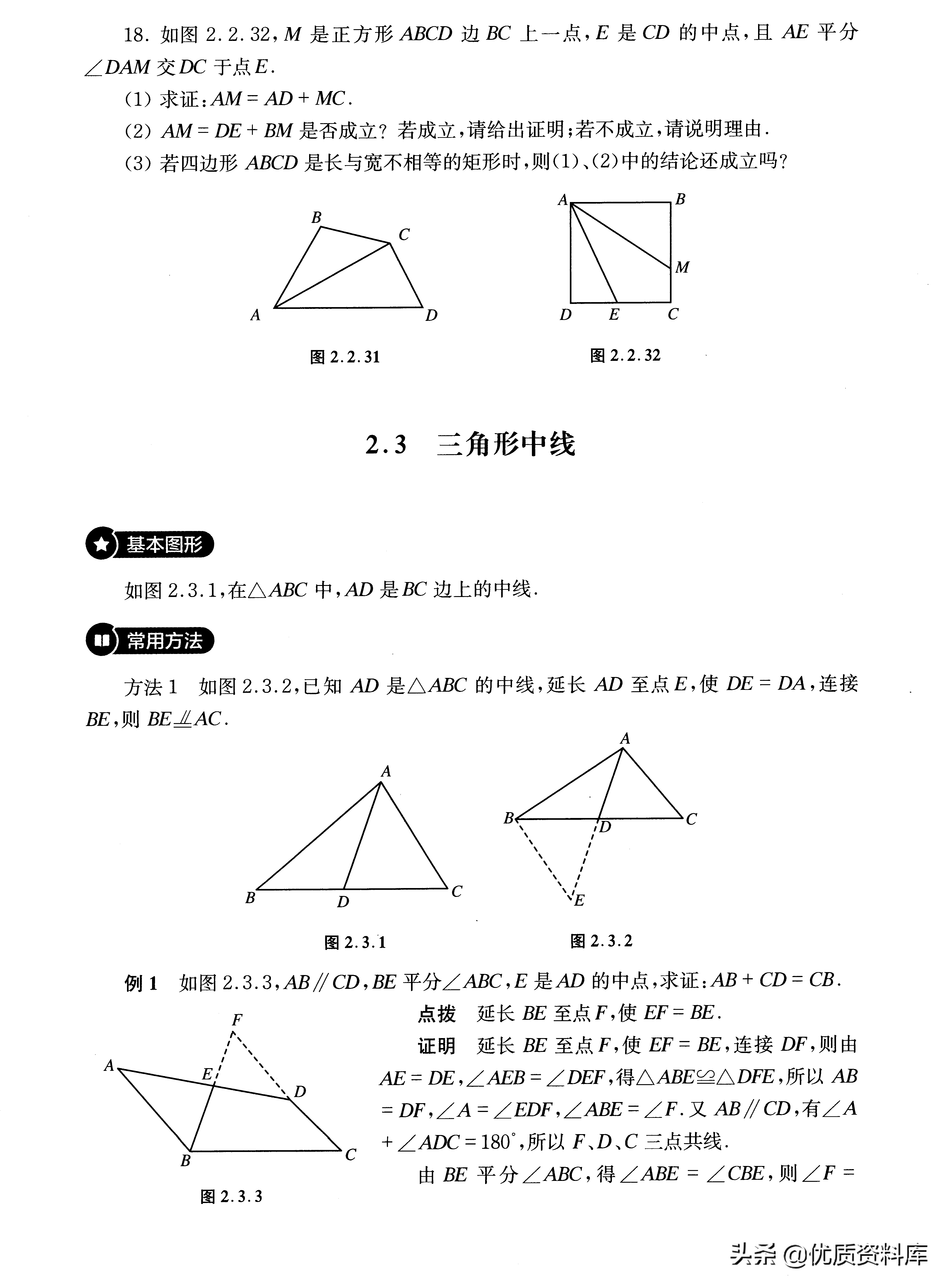 有了三角形的中线、同学们马上会想到倍长中线来解决问题。