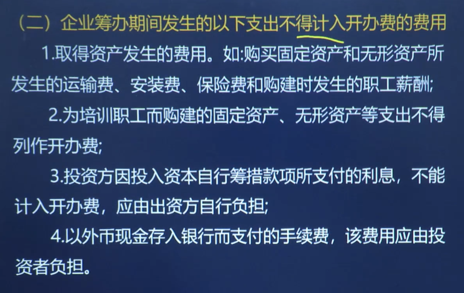 (二)企业筹办期间发生的以下支出不得计入开办的费用