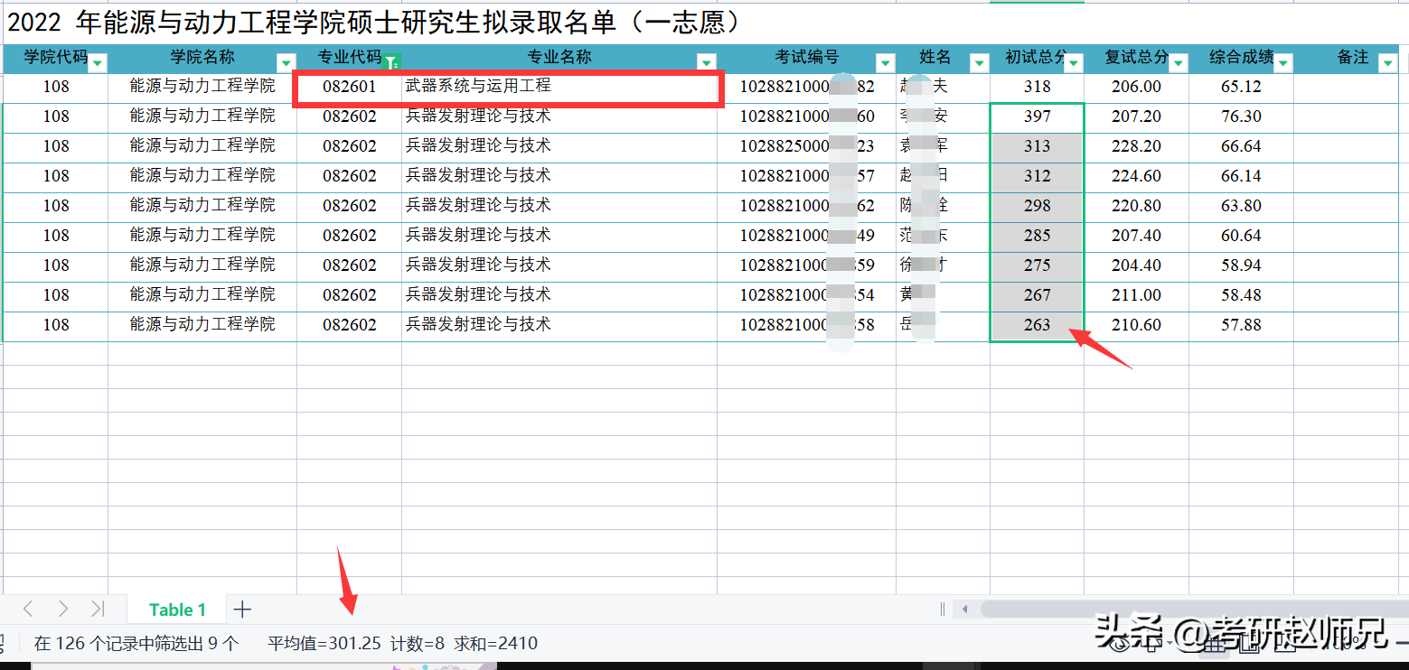 082602兵器发射理论与技术:一志愿总共录取6人,最低分呢289分,最高分315分,平均分303分,