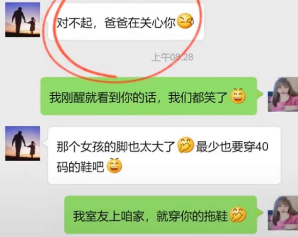 从爸爸发给女儿的信息中不难看出,这位爸爸很爱自己的女儿,生怕自己的“小棉袄”是在和男生一起泡脚。当知道自己理解错误后又马上和女儿道歉,这样的做法真是太赞了。