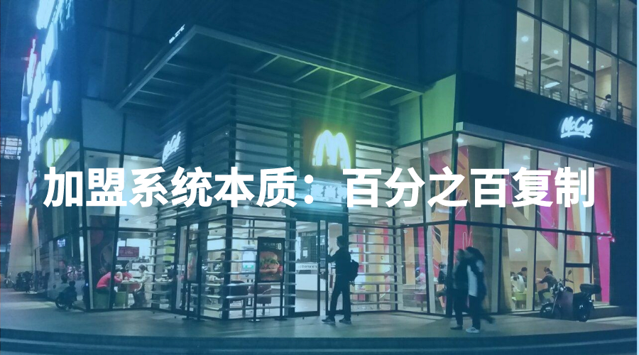 因为它给所有的特许加盟商提供了一个系统,这个系统就是百分之百复制。从产品到服务到流程到品牌,整个一套,甚至包括你的人才培养全都由麦当劳系统帮你输出。