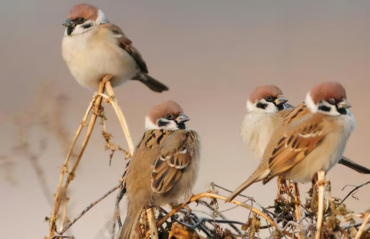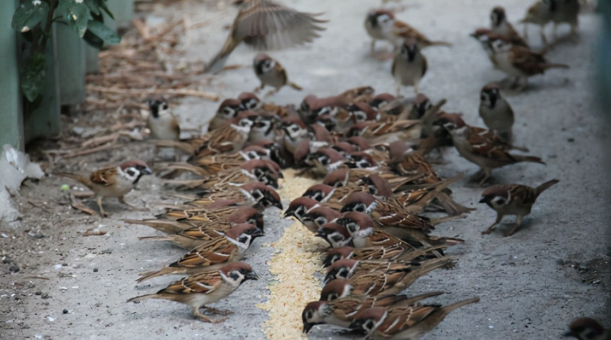 而且它们是一种群居动物,核桃小时候就经常看见电线杆上站满了麻雀,不过现在似乎真的挺少见到了。它们经常会成群结队地觅食,通常是十几只或者几十只,但在秋季的时候甚至可以达到成百上千只。正是因为数量太多,加上它们确实会偷吃庄稼,所以容易形成雀害,当年消灭它们也算是情有可原。