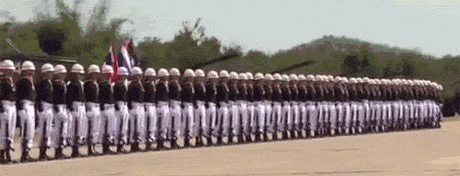 实际上,如果挥手一直持续——形成周期运动,那么这个人浪就是真正的波动,它的特点是:不同的位置都在周期运动,虽然节奏一致,但步调不同,越远处越滞后。关于这一点,下面这个图看起来更清楚。
