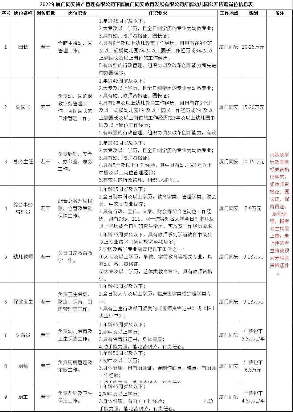 4.岗位要求:(1)有爱心、细心、耐心,责任心强,品行端正;(2)身体健康,具有组织幼儿一日活动的能力。同等条件下,具有多年幼儿园教学经验者,有美术专长者,成绩突出者优先。