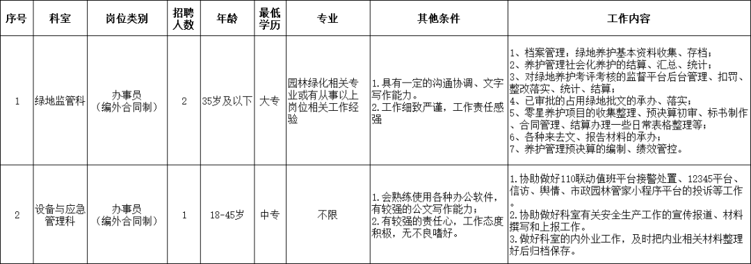 有意向者请将个人简介(附照片)电子版发送到中心邮箱xmlhzx5321862@163.com (全部小写字母),注明“应聘绿地监管科办事员”,咨询联系电话:0592-5105103。