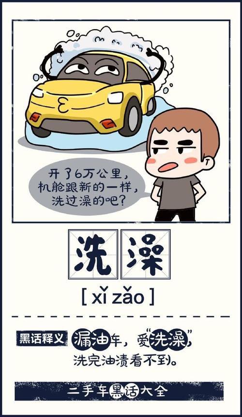 14、洗澡车:洗澡车并非大家字面理解的“泡水车”,指的是车辆内部经过“翻新”式的精洗和修复,外部漆面的保养和修复,也就是咱们所说的车辆精洗。