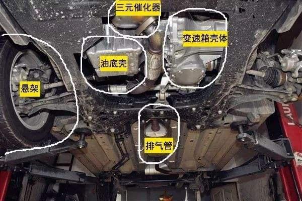 5、车辆底盘的检查:底盘检查就相对简单了,一眼望去底盘规整,没有明显托底的现象和大的刮痕,车辆底盘件无明显锈蚀,如果出现严重锈蚀的话证明车辆长期行驶在海边,这类二手车绝对不能买,海水对于车辆各部件的腐蚀相当严重,后期使用安全隐患大,检查发动机部位是否有油印或者渗水的情况,变速箱想是否出现漏油的情况。