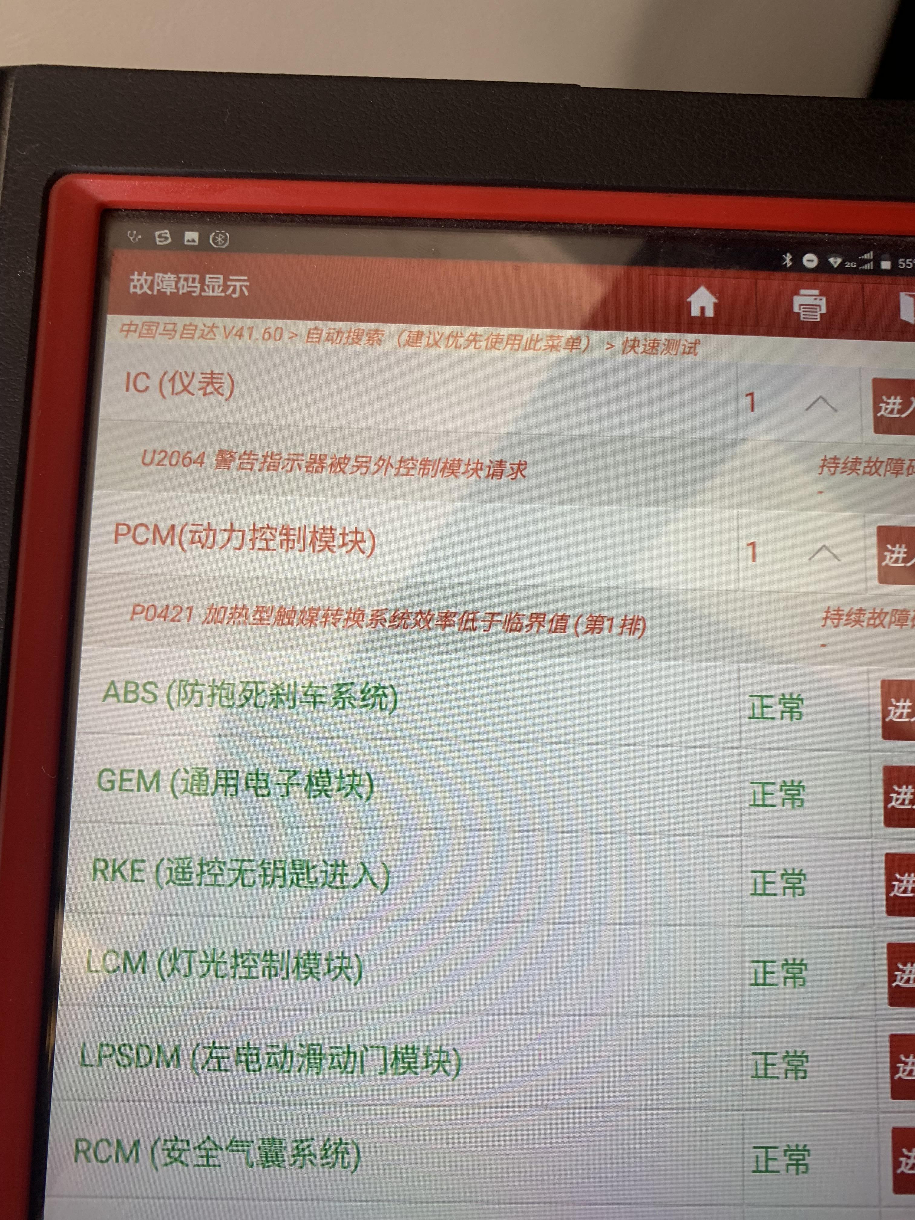 3、行车电脑故障检测:用解码器读取车辆电脑的故障,只要车辆的发动机、变速箱以及ABS系统不存在故障,车辆就没有什么大毛病,除了新车,大部分使用一段时间的车辆或多或少都会有一两个故障码,有时候灯泡坏了电脑板都会储存故障信息,所以只要车辆主要系统没有故障即可。