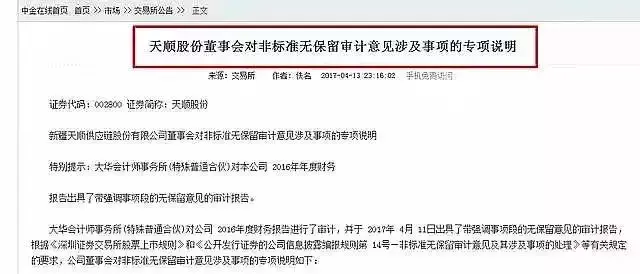 财务报表中如果存在着过多解释性说明的公司,其管理层就可能藏着不可告人的秘密。如果上市公司被出具“非标”审计意见(除了“标准无保留意见”外),其他审计意见都表明了审计机构对财务报表存在异议或疑义,简称“非标”意见,那么投资者就要谨慎关注了。