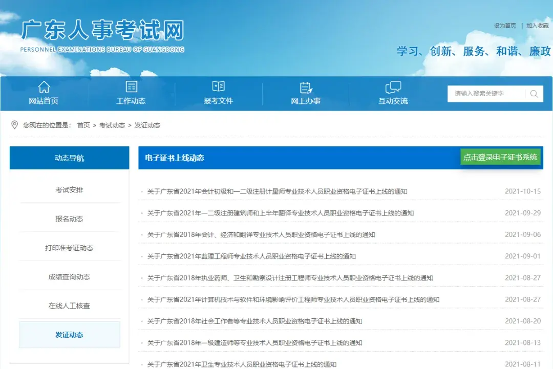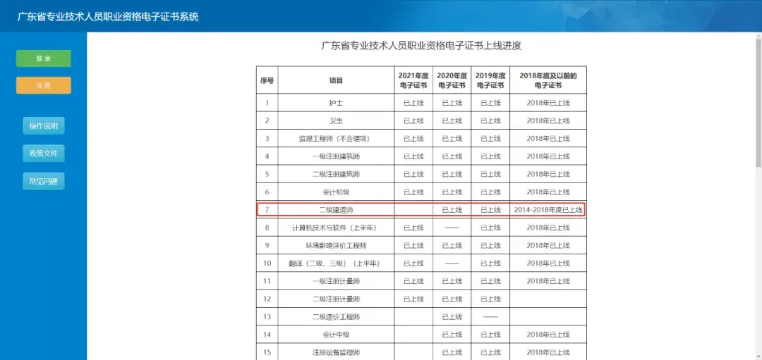 在广东省人事考试网及广东省专业技术人员职业资格电子证书系统的官网暂时无法查询到上线通知。