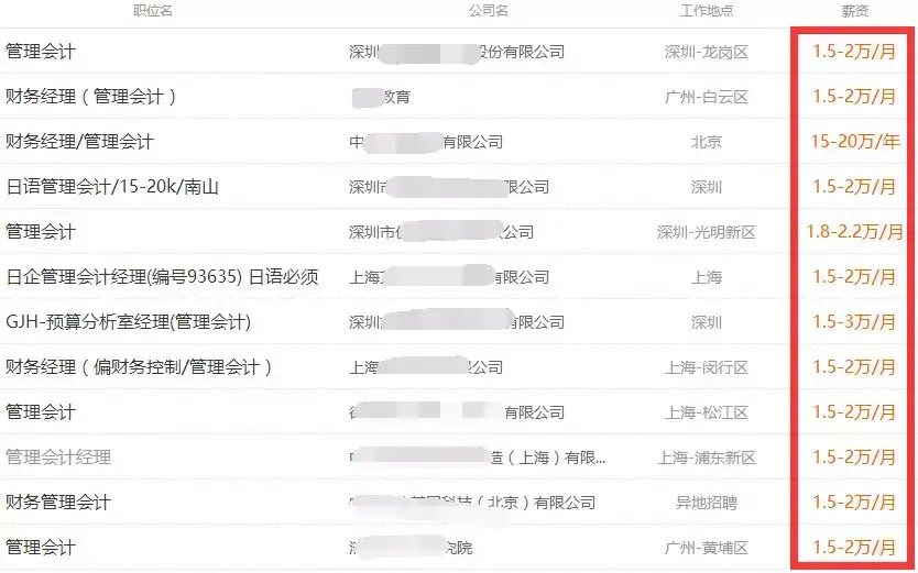 而在管理会计岗位的薪资待遇上,各公司也开出高价抢人: