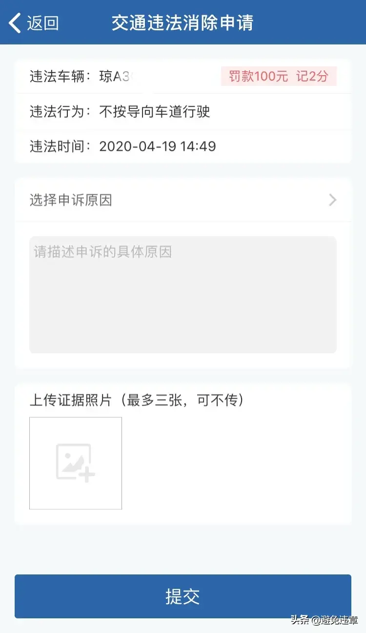1,这是在交管12123查到的交通违法图片,最下面新增“交通违法消除申请”功能。