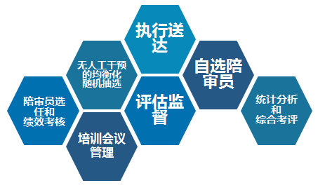 陪审员选任和绩效考核无人工干预的均衡化随机抽选培训会议管理执行送达评估监督自选陪审员统计分析和综合考评▲陪审员职责