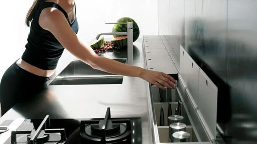 在保证厨房走道的前提下(至少60厘米),建议将厨房操作台面加宽10至20厘米;这么做的目的除了创造更宽敞的做饭空间,也有利于在水槽后方增加一处收纳空间。