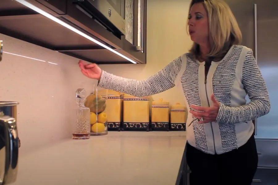 因为,厨房吸顶灯通常位于身后,加上吊柜遮挡了部分光线,常让操作台面的亮度不足;所以若能在吊柜下方安装灯光,除了有利于解决幽暗状况,对于切菜时的安全性也能提高。