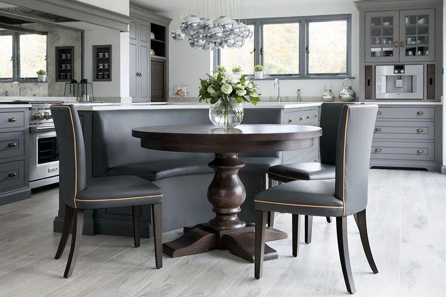 而卡座设计除了常见的一字型,还能依据需求及空间条件分别打造出双一字型、L型、U型、半圆型、四分之三圆型…等。另外,餐厅卡座也能与中岛台结合,发挥餐厨合一的效果。