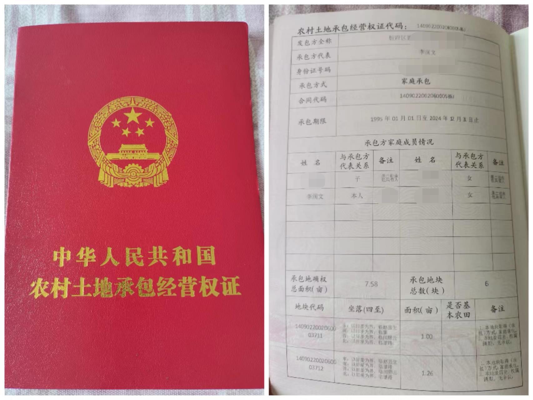 李家持有的土地承包证