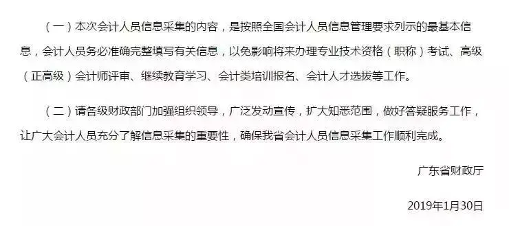 我们先来看看广东省关于开展会计人员信息采集工作的通知最后两段话: