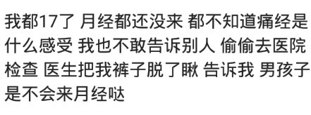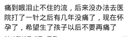 网友A:说实话有的人不痛经,但有的女生痛起来要命啊,痛起来直到结束整张脸苍白无力,就像我每次来都肚子疼,我是来之前痛经,动一下就像抽筋一样好可怕。