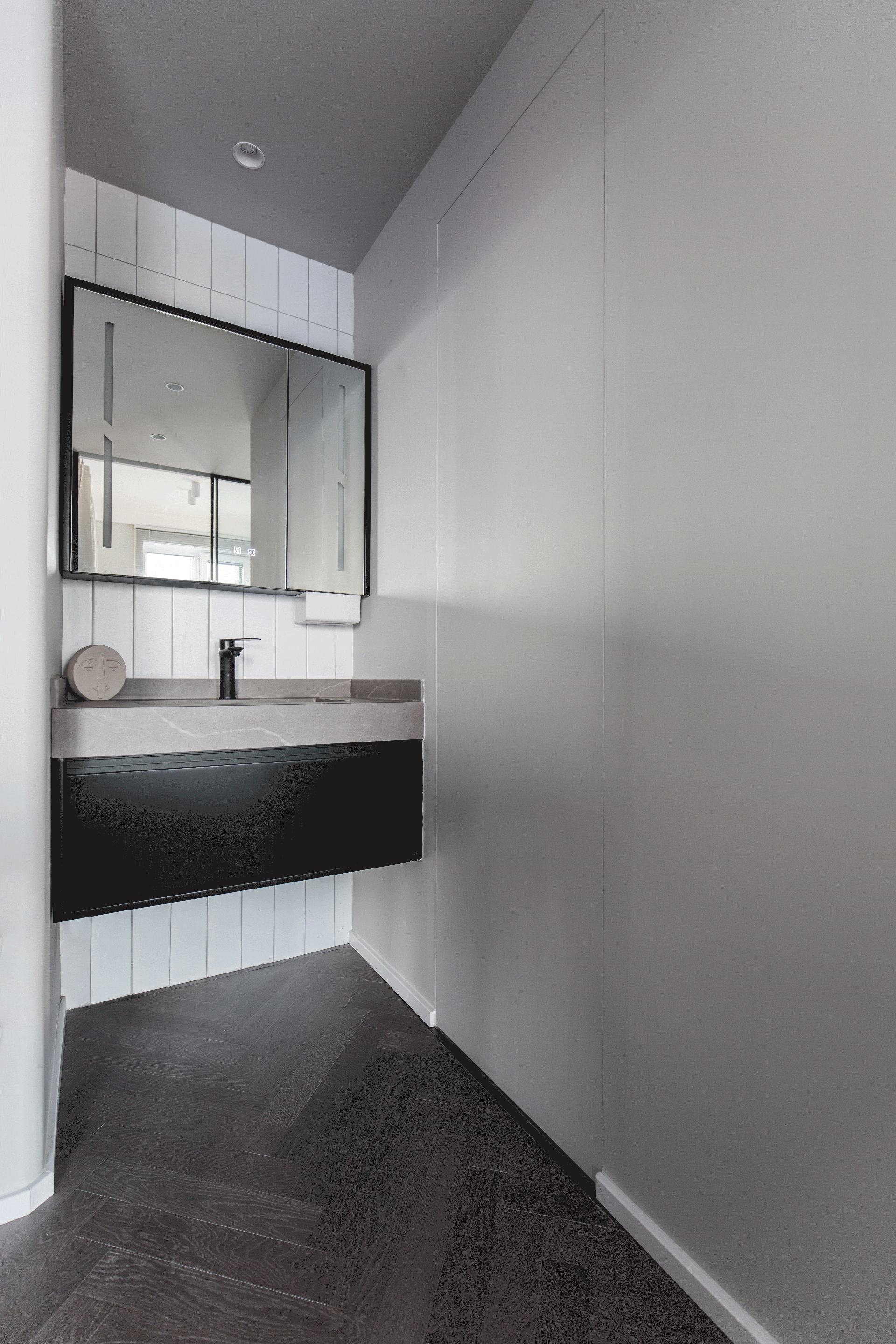 卫生间做好干湿分区;玄关一排面的大柜子,小家被重新调整后,功能足收纳多,再通过简洁的装修手法,真不愧是小户型的装修样板。
