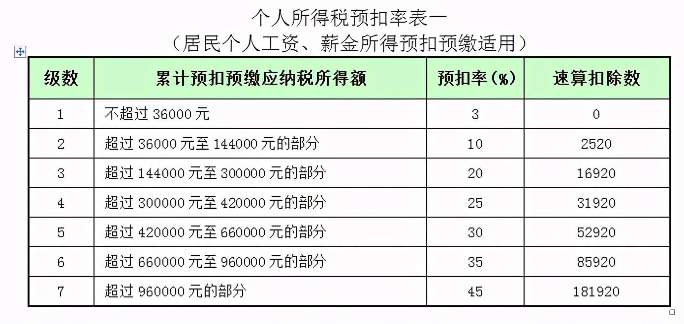 个人所得税税率表(按扣除费用5000元及其他扣除项目后的金额为计税依据)